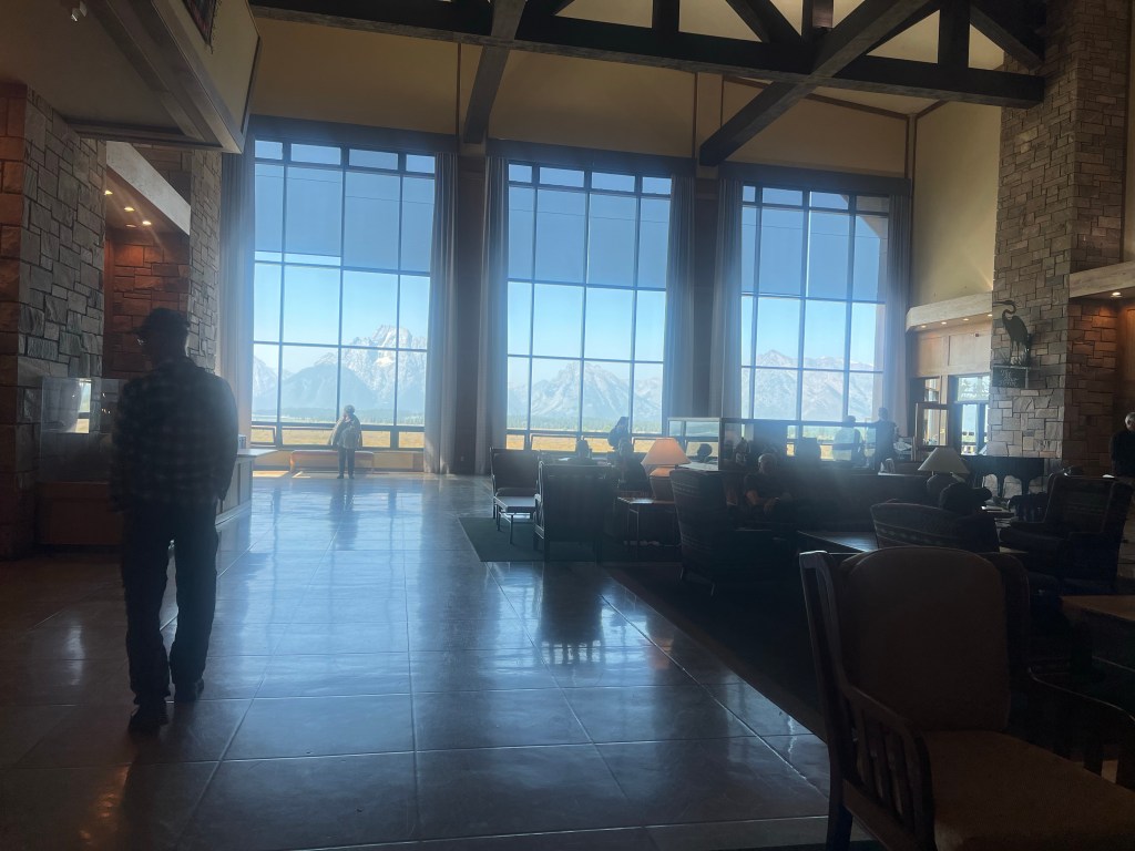 We also stopped at Jenny Lake Lodge – much newer and more modern architecture than the one at Old Faithful but there is a nice viewing lounge and often the animals are grazing.