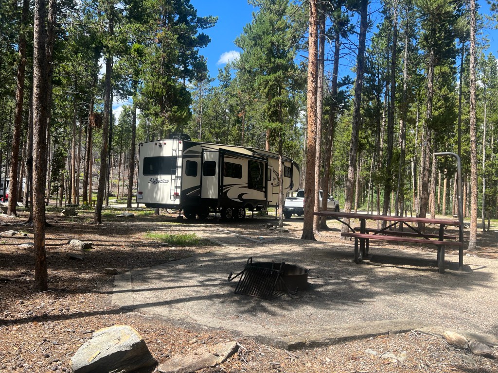 We had a quick lunch after we set up and then took the truck out for some sightseeing. First was a stop at the Tie Hack Reservoir. Joyce camped here in 1969 with her family. According to her Dad, the lake didn’t exist then and in fact the camping area was where the lake is today.