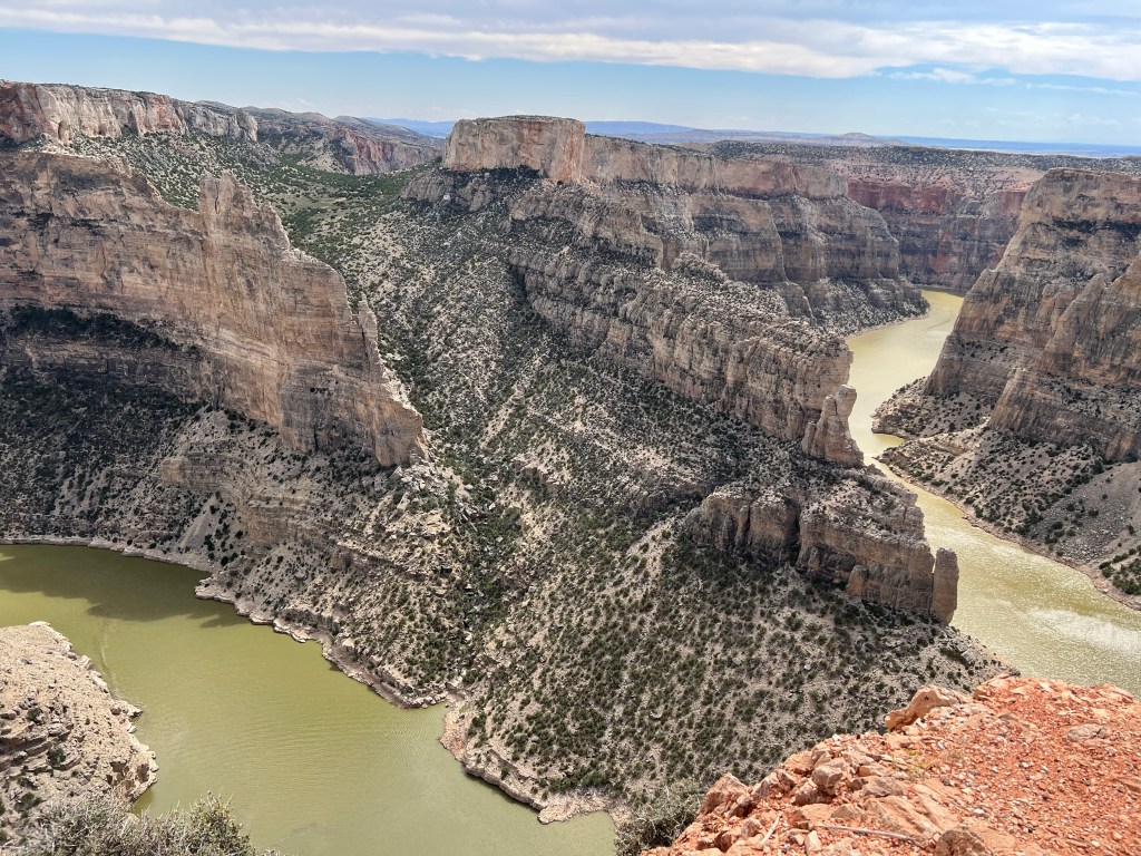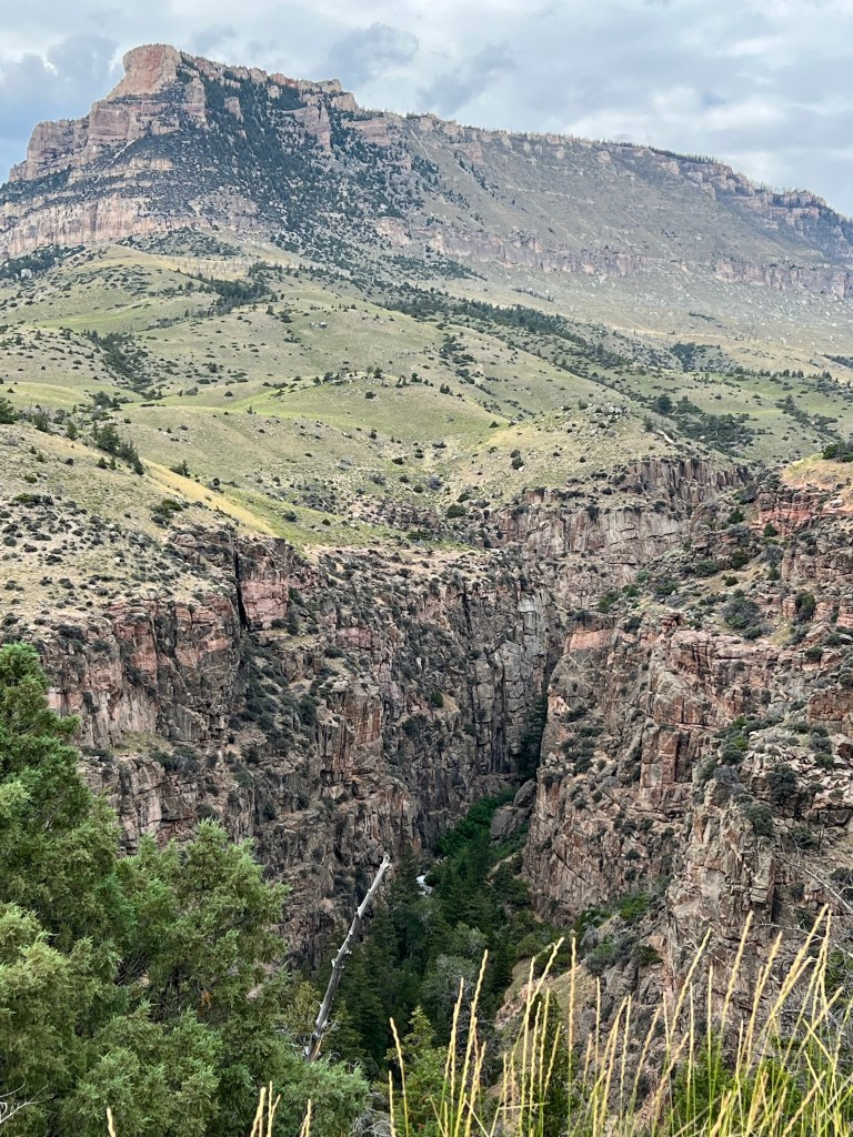 The landscape along the canyon changed and became more colourful. The Bighorn River flows through the canyon and is used for lots of water activities. There were lots of boaters out, especially being a weekend. We turned around at a point known as Devil Canyon Overlook. It gave us spectacular views!