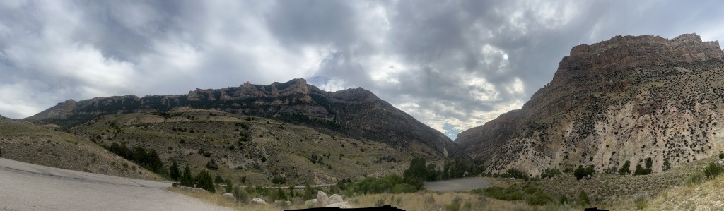 We had a long’ steep 10 mile journey with grades of 10%. Tomorrow we bring the trailer down them! Once at the bottom we made a stop in the small town of Lovell for some lunch before heading north through the Bighorn Canyon.