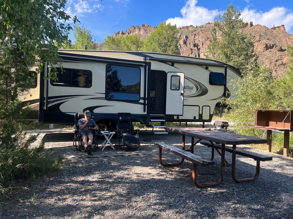 By early afternoon we had reached our campground. Still a number of sites available. We’re here for 5 nights, no cell signal but planning a number of day trips where we should have some signal.