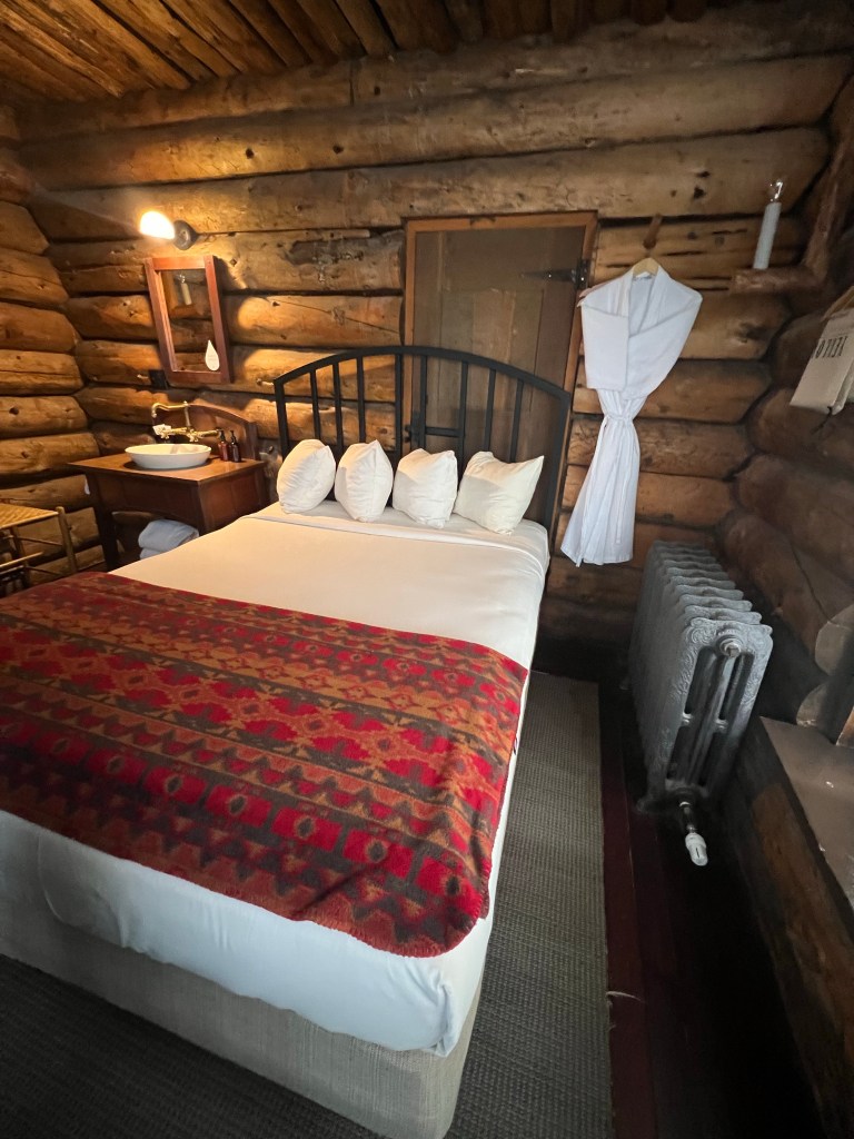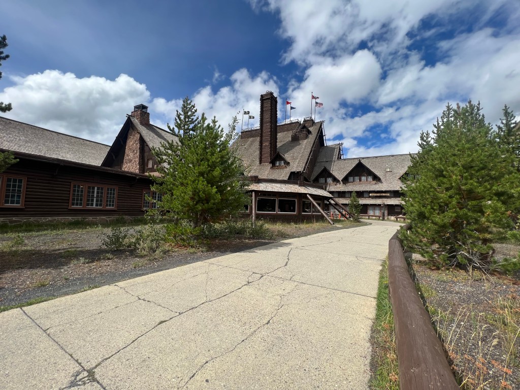 Today’s destination is Old Faithful, the first geyser in Yellowstone to be named. It has erupted every 44 to 120 minutes since 2000. In 1872, Yellowstone became the first National Park in the United States to protect all the geothermal features found there. For many years, only the rich could go, initially taking the train to West Yellowstone where they then boarded stagecoaches which took them into the park. In 1903, the Old Faithful Inn was built and opened to guests in 1904. It still stands today and we were able to take a tour of it. It survived the 1988 wildfires that destroyed about half the park. Although a dozen cabins burned, the Inn managed to escape the fire.