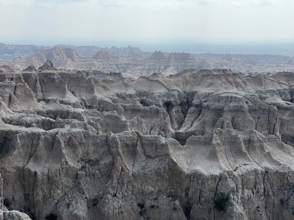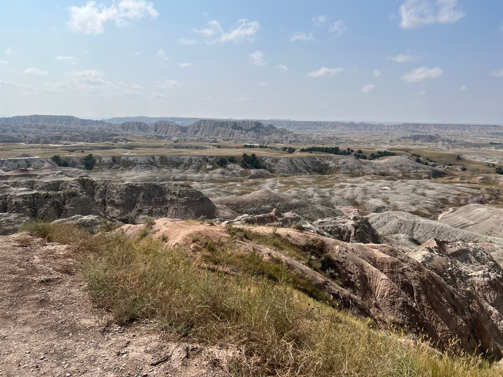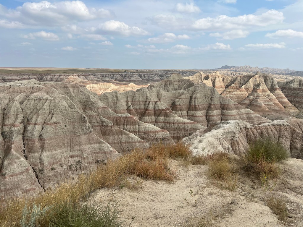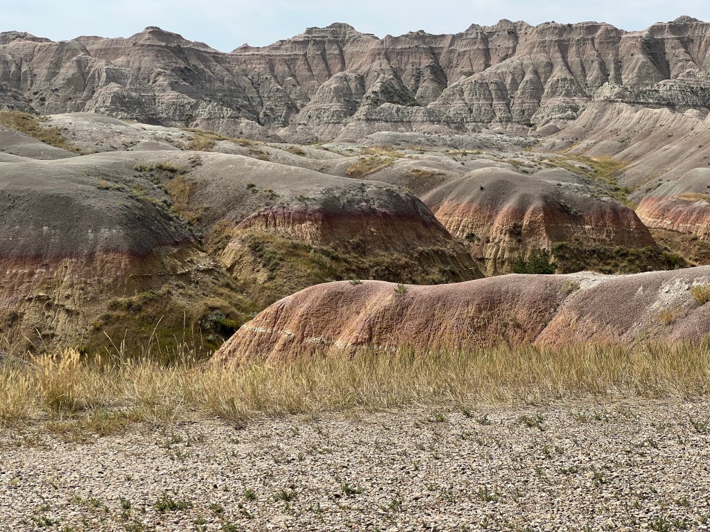 After breakfast we headed out to the Badlands National Park. We had a sunny morning and the sun was on some of the hills. We still have a bit of smoke in the distance from the forest fires 🔥. The colours in the hills reflect the different types and hardness of the rock making up the hills.