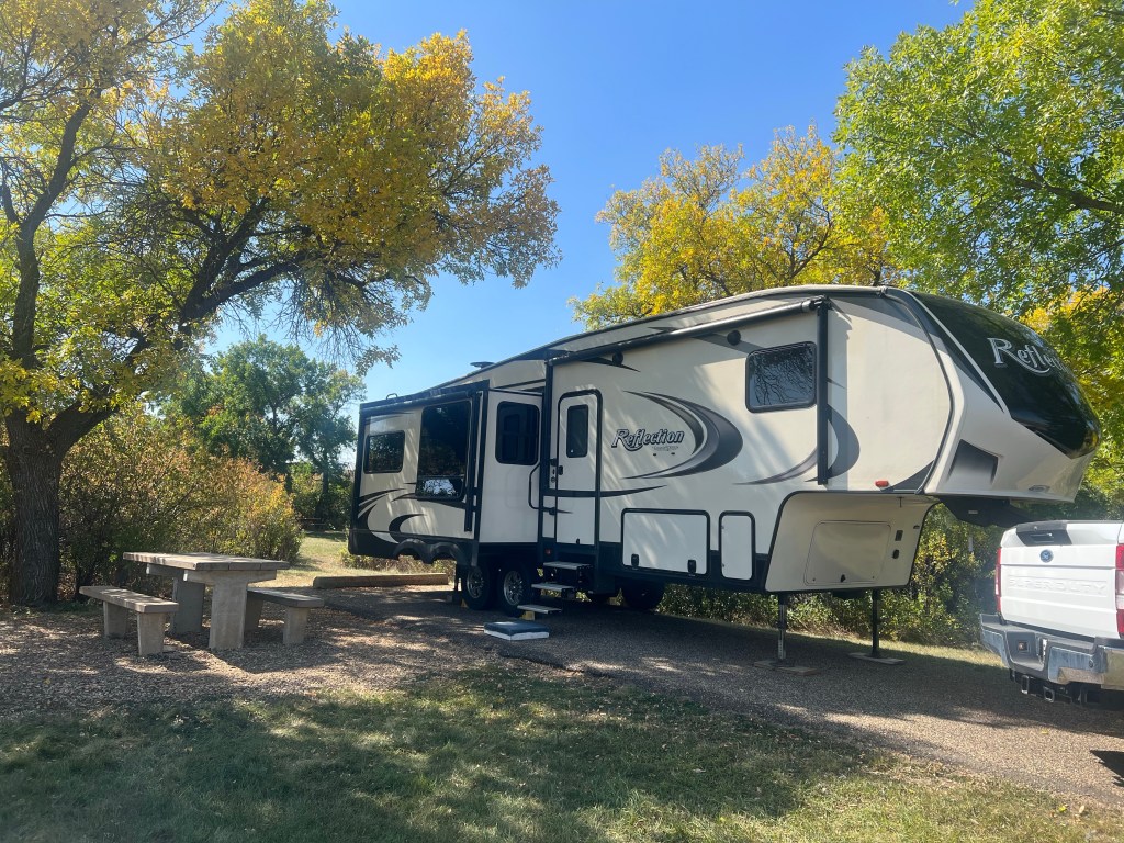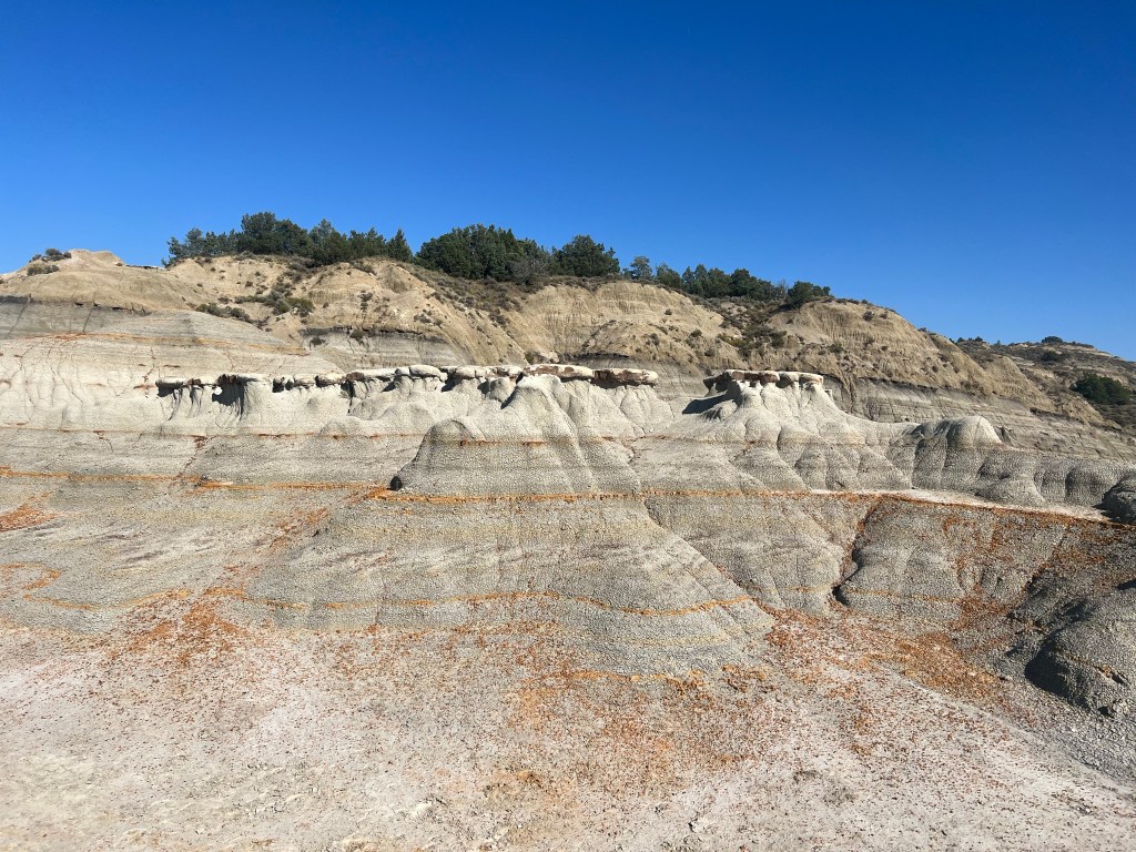 We headed north on Wednesday for another long drive. Despite being up at 6 am and being on the road before 8, we still weren’t able to secure a site within the National Park – their sites were full by 11:30. However, we did manage to get a nice spot in the Little Missouri National Grasslands at Buffalo Gap.