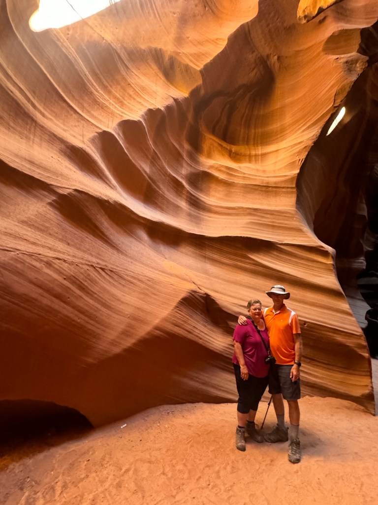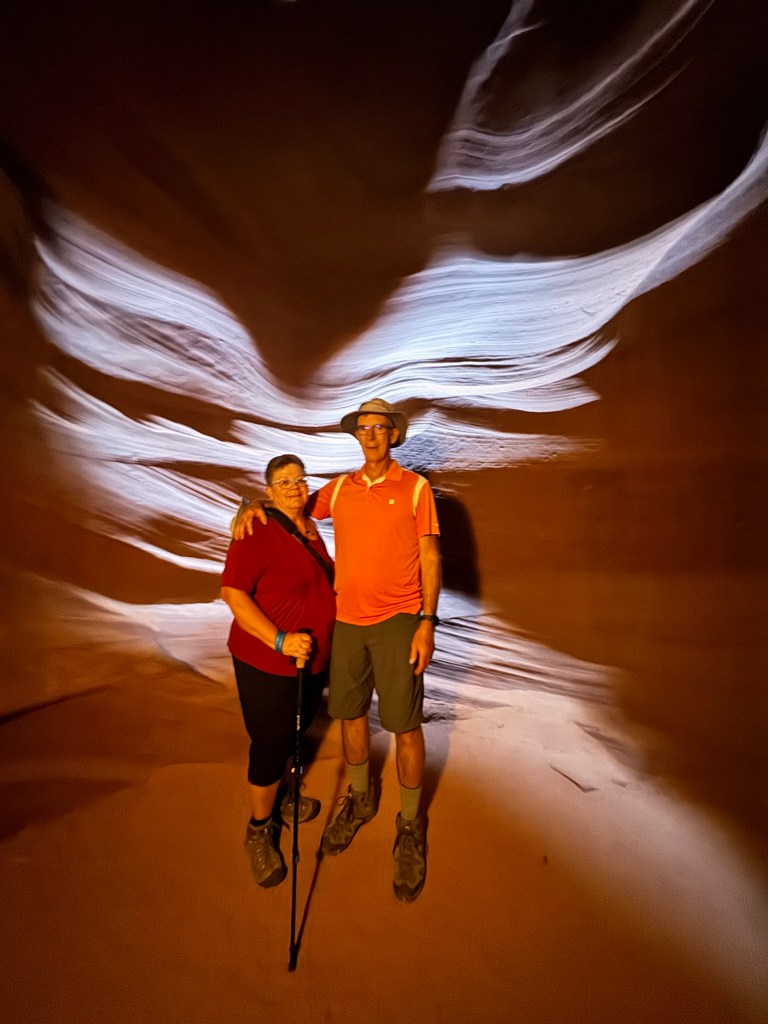 Sunday we headed into Page to our tour store to start a guided tour of Upper Antelope Canyon. We were taken by van just south of Page where we travelled several miles on a sand trail as the driver went about 40 mph thru washboards and loose sand. We were glad to reach the canyon and start walking!