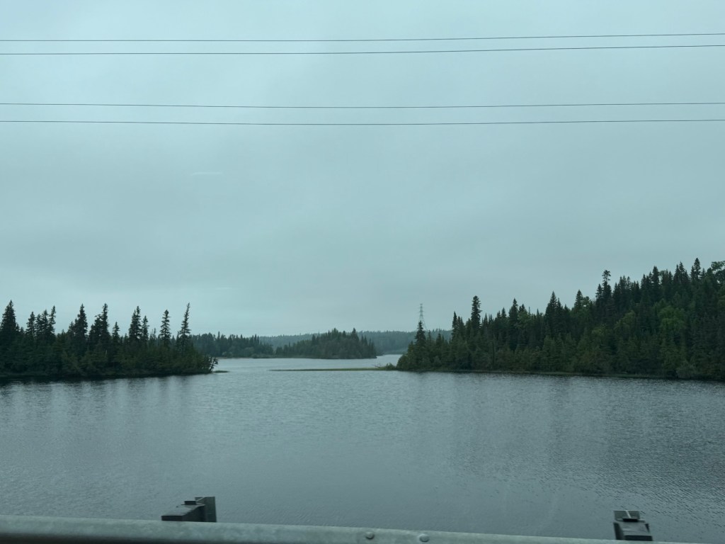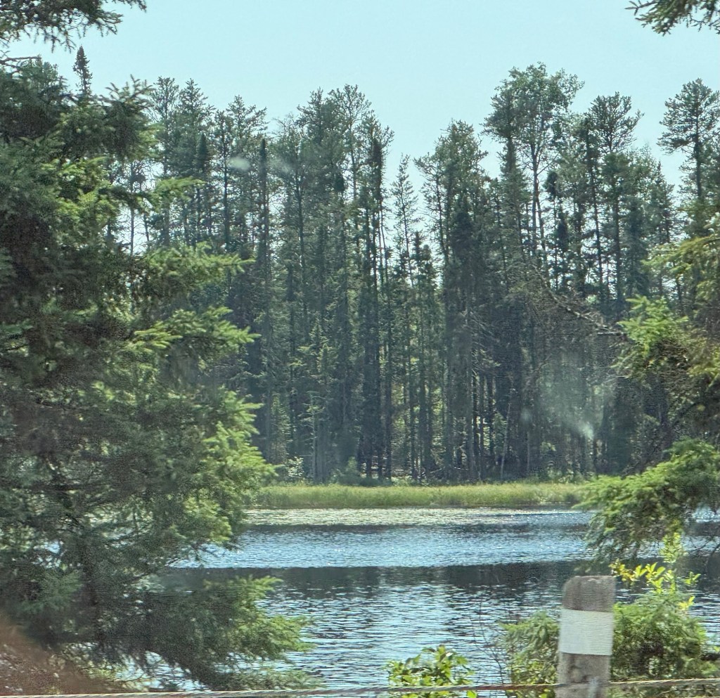 After some great navigation info from our hosts about getting fuel in Thunder Bay, we set out for the day. Our destination is one more Ontario Provincial Park, east of Kenora. Having filled with 200 litres of fuel and stopping for a few groceries, we carried on our way. We have sun again today, enough to charge our solar and run the fridge off power instead of propane while driving. The road has been good overall. Lots of trees and water – more scrub trees in swampy areas. Also lots of dead trees – you can see how the fires would burn when started either by lightning or human hand. So far we haven’t been impacted by any fires.
