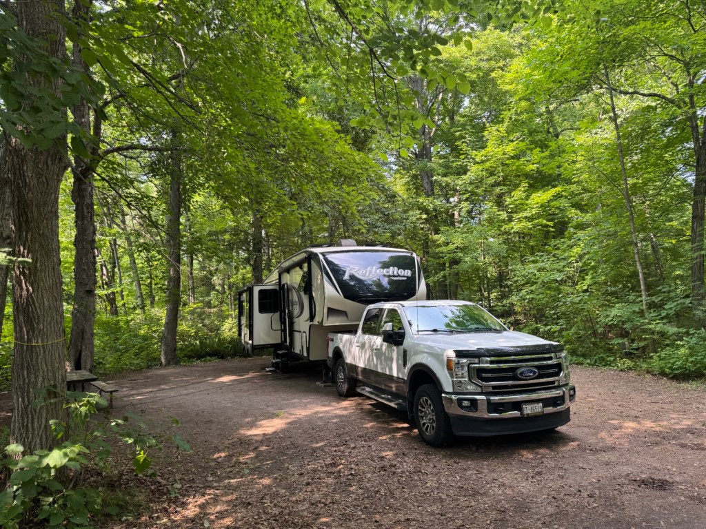 Our campsite was at Rabbit Blanket Campground in Lake Superior Park. It was an older park, with narrower roads and smaller sites. However, our site was long and wide and we were able to back right in without any problems. This park won’t be on our list to return to, only as a last resort.