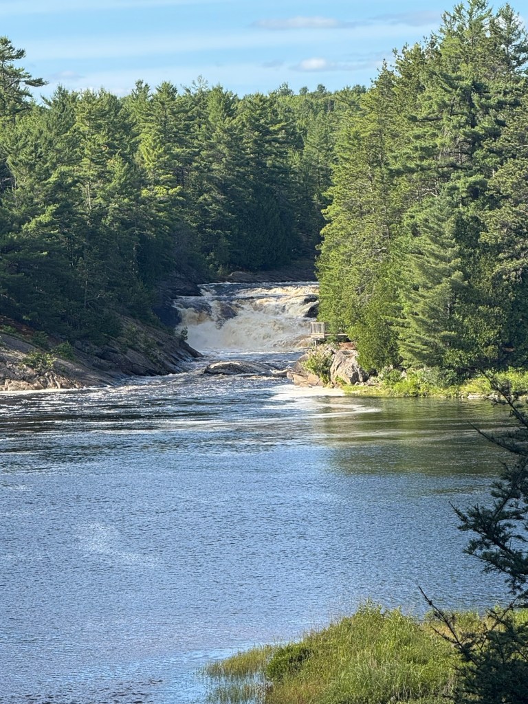 Leaving Grundy for Chutes Provincial Park, we had a short drive of only a couple of hours. We took the opportunity to make a few stops. First was a roadside stand just south of Sudbury where we were able to pick up some beautiful strawberries as well as a basket of wild blueberries. It’s been a long time since I splurged on fresh ones – not cheap but when I look at their size, I can’t imagine how long they take to pick! Then on to Sudbury for fuel. While Paul filled up the truck, Joyce got to a grocery store for a few more veggies.