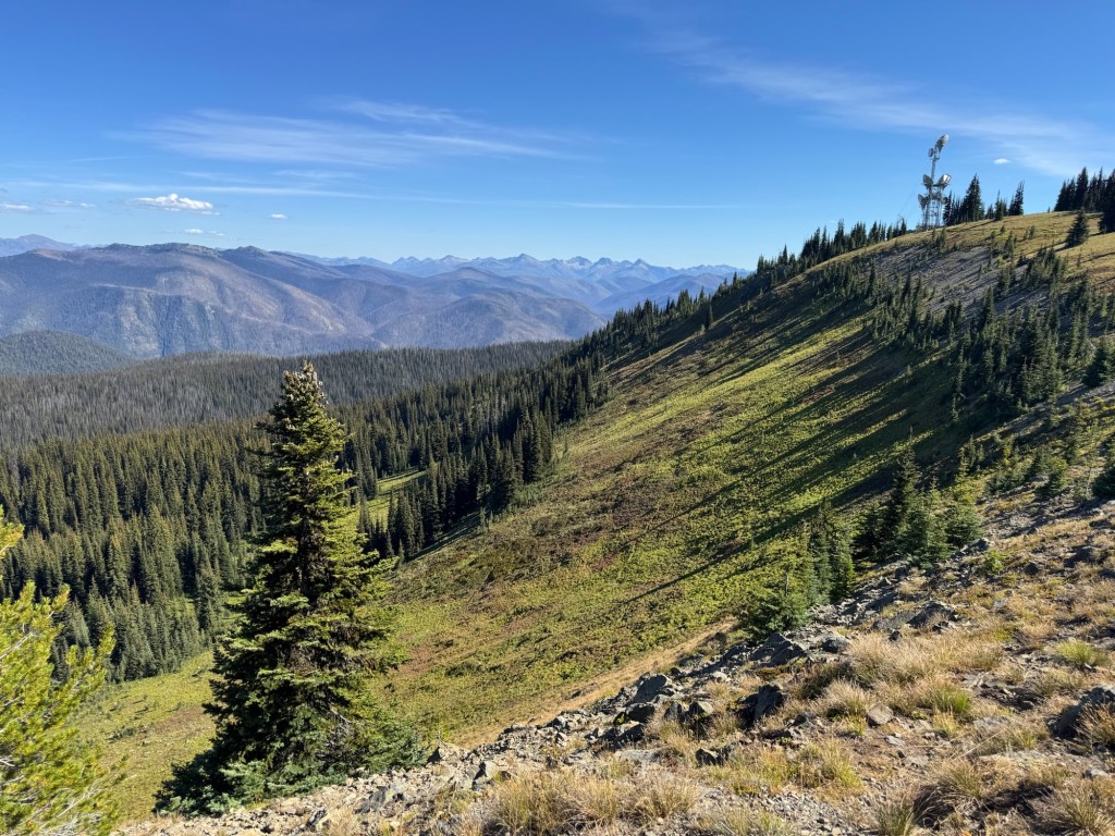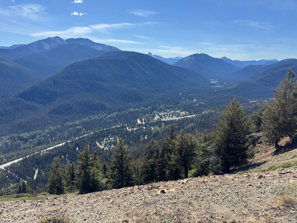 After breakfast the next day, Paul and I headed back to the Kettle Valley trailhead and took off through Mount Conkle park to bike. Unfortunately the trail surface wasn’t the best, although better than at KettleValley River. It also had elevation changes but we rode through them – my electric bike definitely helped me! We had a couple of viewpoints over the valley as well.