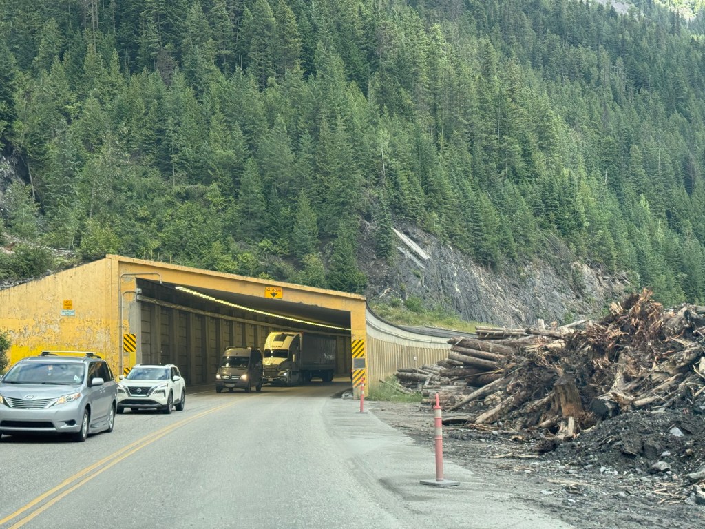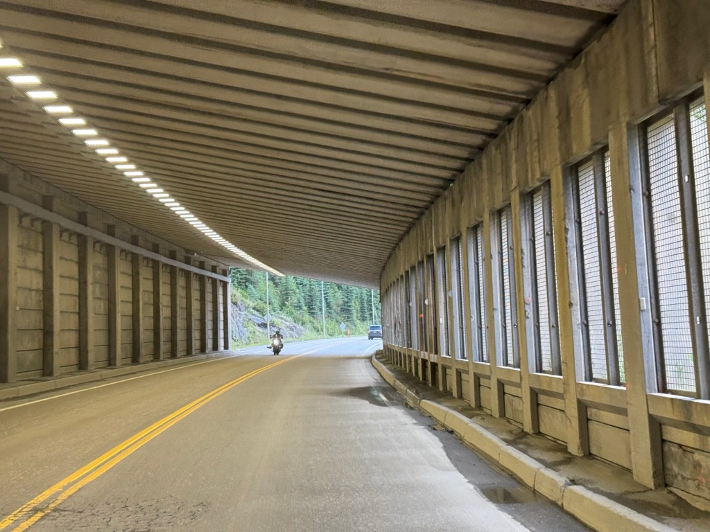 Along the Trans Canada Highway there are a number of snow sheds which are meant to provide protection from snow sliding down the mountain.