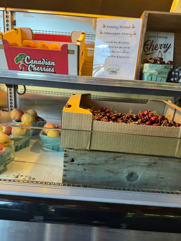 We took a day trip on Monday, going south of Sicamous, down highway 97A to Vernon and east. We are away from the mountains now and closer to the Okanagan Valley so we started to see some farm stands and Okanagan fruit for sale.