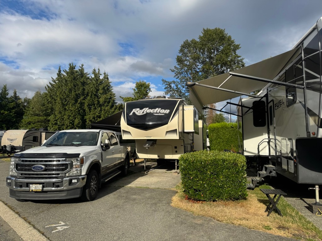 On Thursday morning, after a stop in Merritt for fuel and groceries, we began the day’s trip to Vancouver. Although we only had a 3 hour drive, it took longer due to construction and traffic congestion as we neared Vancouver. We’ve camped at this campground 6 years ago, the last time we were in Vancouver. The campground is old and sites are small. Parking the trailer was tight – once slides or awnings were out there wasn’t more room tor anything else.