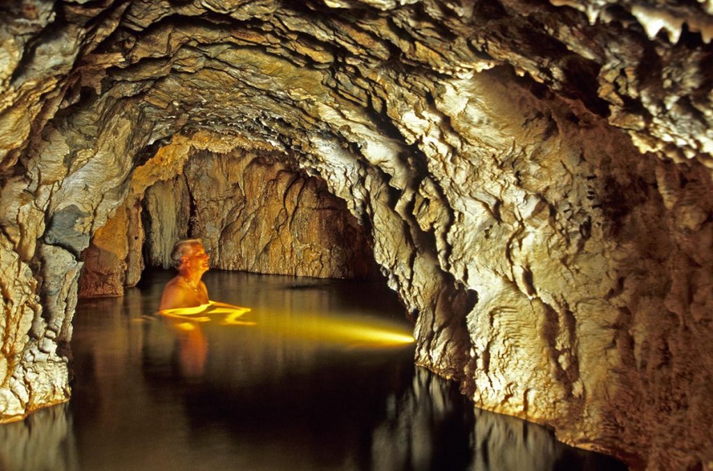 Then, we had an early supper so we could get to our last hot spring of the trip – Ainsworth Hot Springs. Open only Wednesday through Sunday, it also has limited hours that it is open to the public. It is unique because there is a cave that is part of the hot spring. We did a walk through the cave, where water temps range from 104-108 degrees F. It is also much like a sauna and not a comfortable place for Joyce.