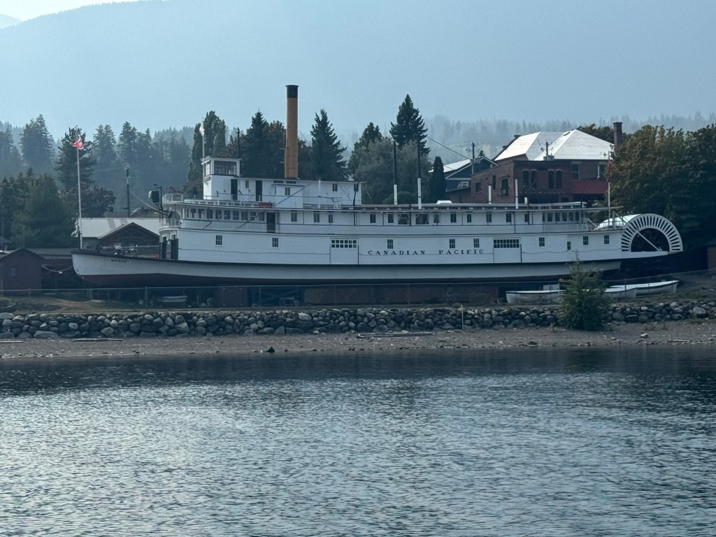 On Friday, we took a quick drive north to the town of Kaslo. Located on Kootenay Lake, it has a few little shops as well as a municipal park. It is also a National Historic Site of the S.S. Moyie, the oldest intact passenger sternwheeler in the world, built in 1898. It started as a passenger boat, transitioning to carry freight as well. It came out of service in 1957. Our time didn’t allow us to go inside the display.