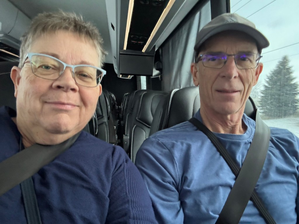 So, on a cold, windy day, our daughter Kim and her husband Steve, dropped us in Breslau at the Region of Waterloo airport. After a smooth check-in we had about an hour to wait before they announced we could board the coach for Toronto with 10 others for an uneventful trip there.