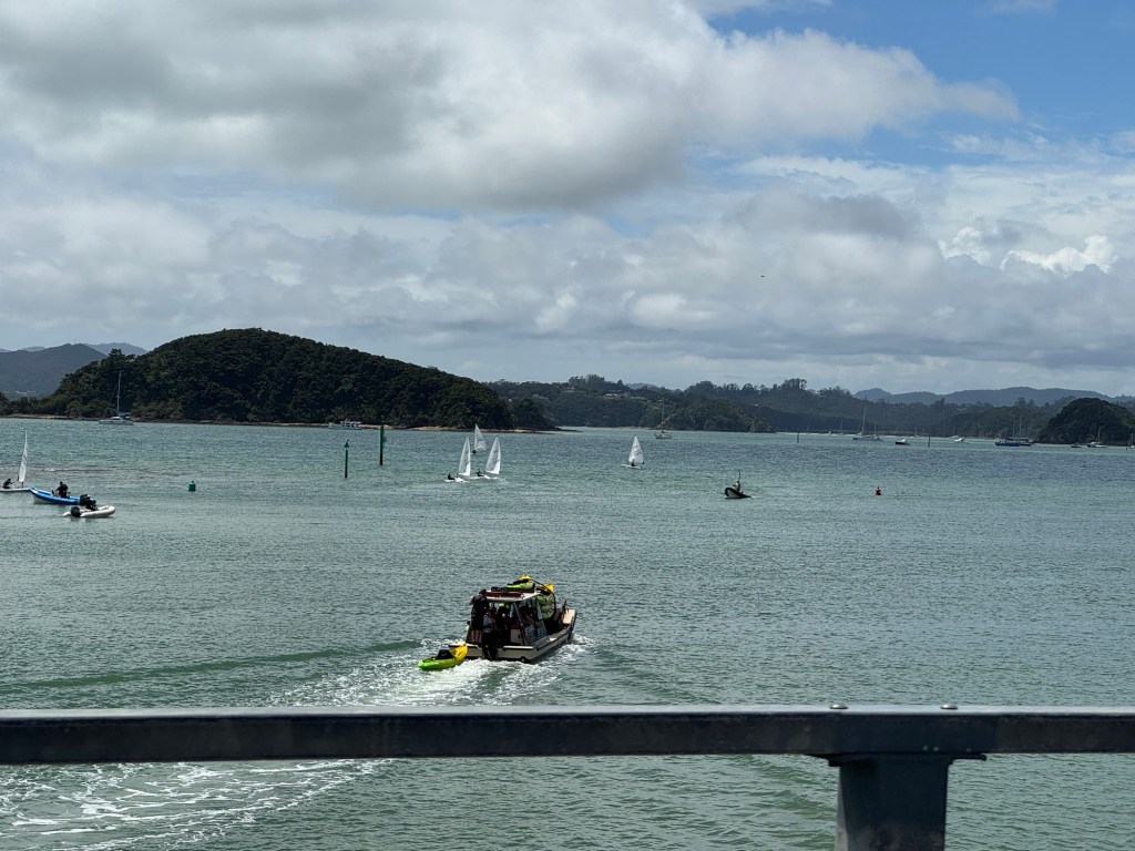 Being summer holiday time for New Zealand, it was a busy area, even during the week. At the coast, we had some beautiful views of some of the closer islands. At this point, we had some good weather. No sign of rain yet.