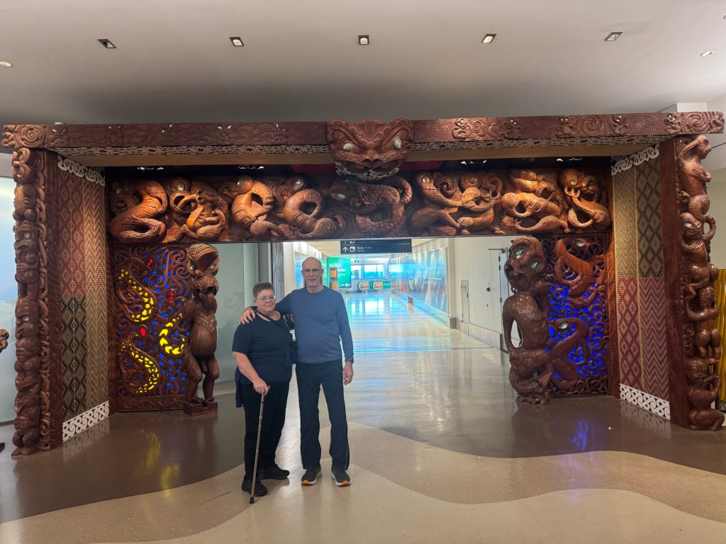 We were able to get a route to our hotel which avoided downtown Auckland. It was a bit unnerving for Paul to be driving on the other side of the road. Being straight on the highway wasn’t too bad – except the slow lane is to the left and the signal lever is on the opposite side of the steering wheel from what we’re used to, so the windshield wipers were turned on a few times! We had a 45 minute drive to the hotel.