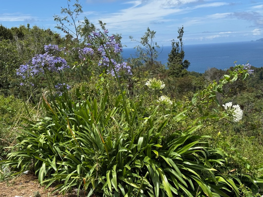 We’ve seen these tall white and blue flowers for days but I finally had a chance to get a close up of them. They’re beautiful!