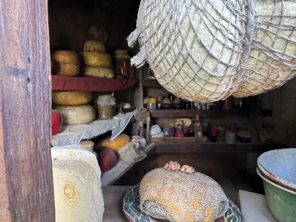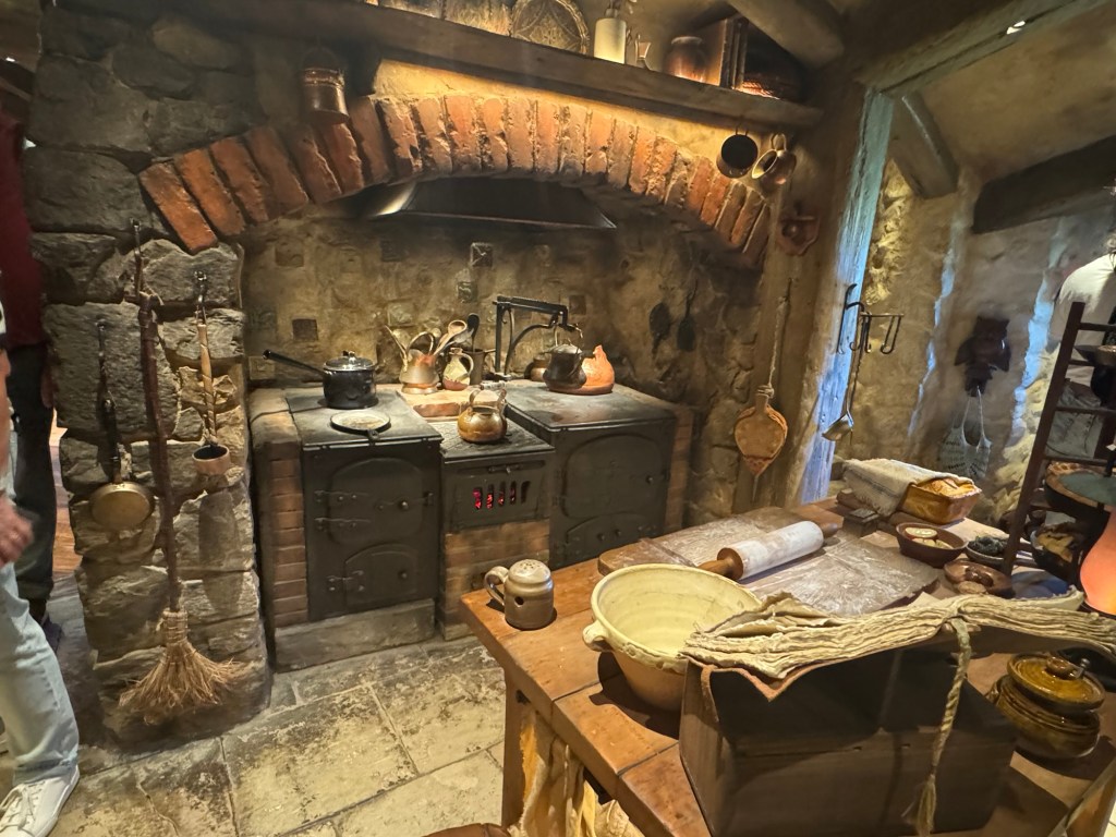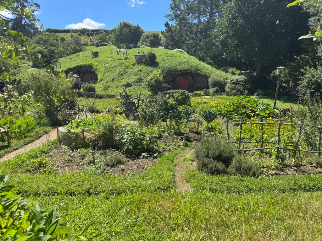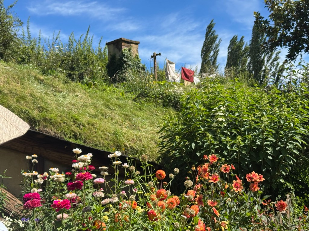 Most of the hobbit holes are mostly doors with just a little space behind so someone can be seen as going in or out of the door. They are colourful and each one has a set up in front that helps indicate what the occupation was of those who lived there.