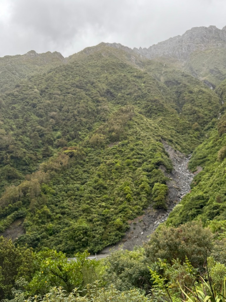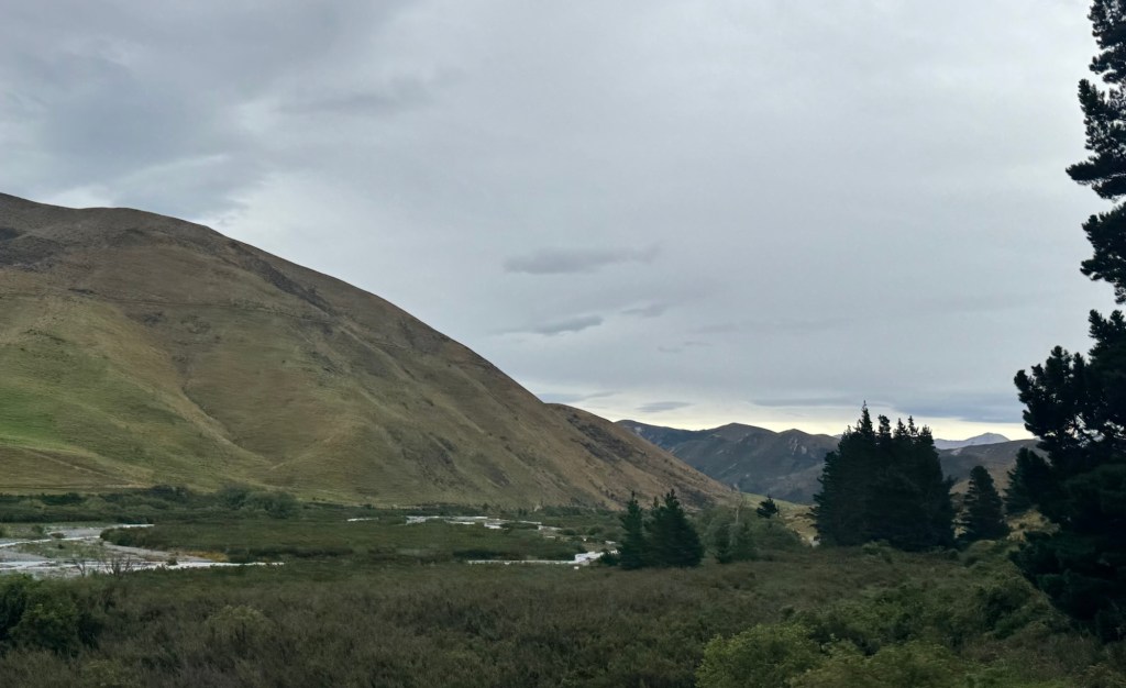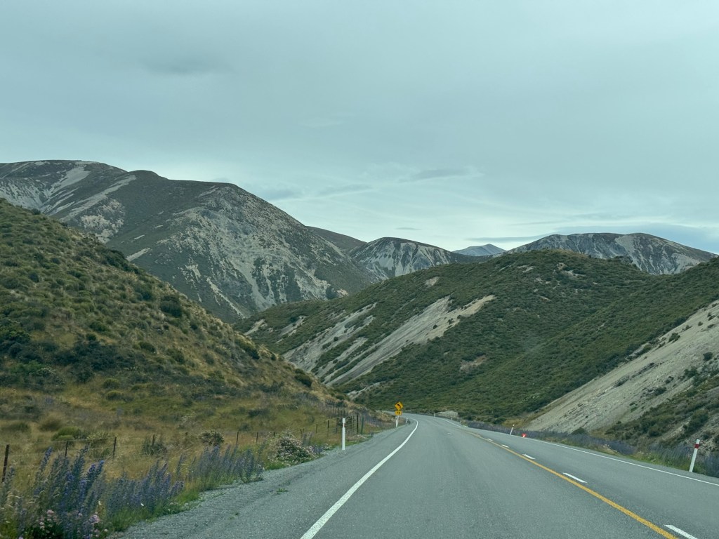 Thursday morning was cloudy as we left Christchurch about 9 am for a drive across the island. Our route would take us through some mountain ranges so we were hopeful not to have rain.