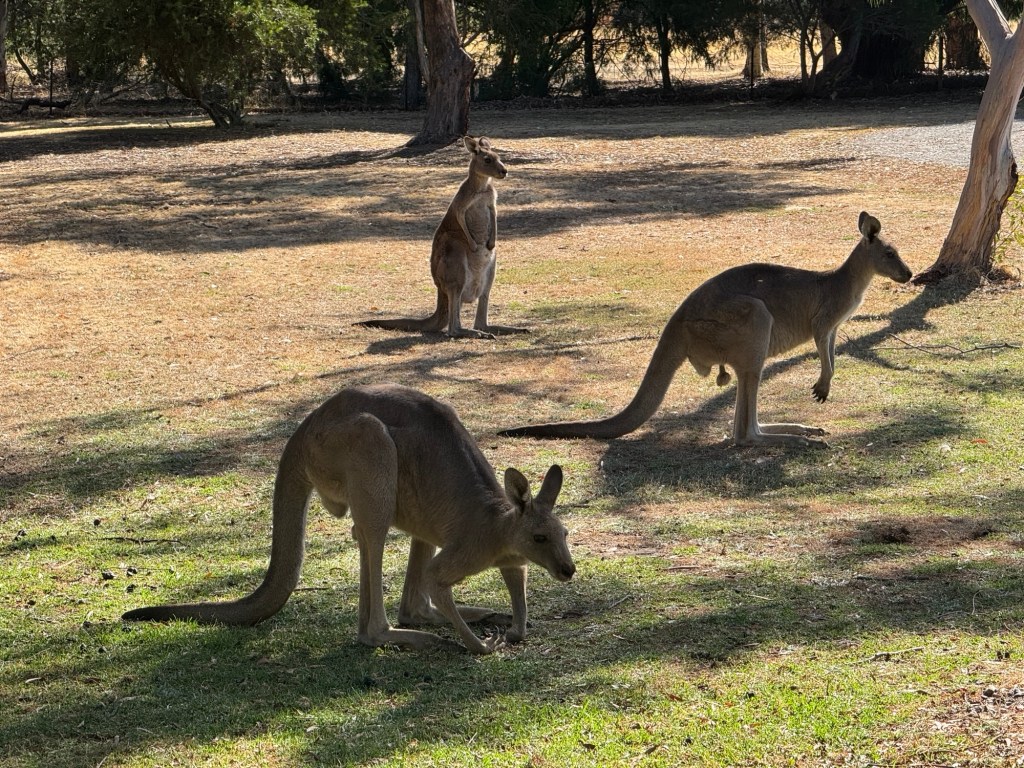 Friday night we had a dinner invite at my cousin Dan’s in-laws who live in the area and whom we had met when Dan and Dave were married. We had a wonderful evening with them. We enjoyed a meal that included lamb (we still haven’t had our fill!) and they made individual pavlova for us (the national Australian dessert). We left to go back to our B&B after dark so we took our time, watching for any kangaroos, but none were to be seen.