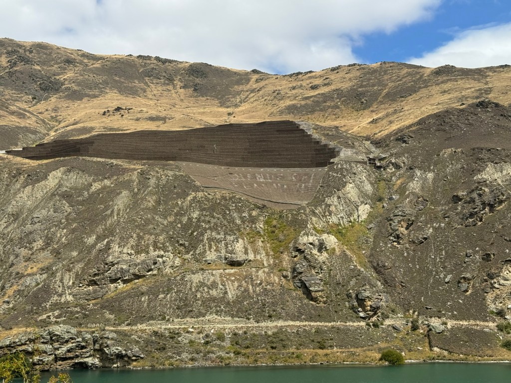This is an engineered solution for the Cairnmuir landslide in the Cromwell Gorge.