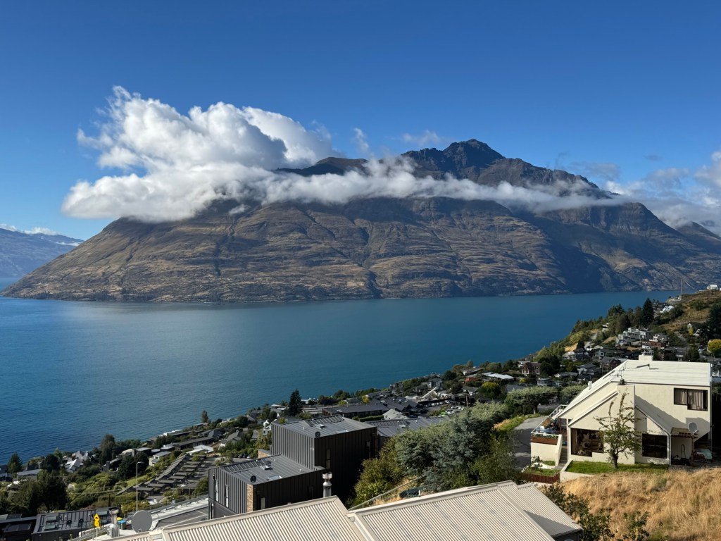 As we headed back along Lake Wakatipu, the clouds had lifted a bit and we had a different view from the morning.