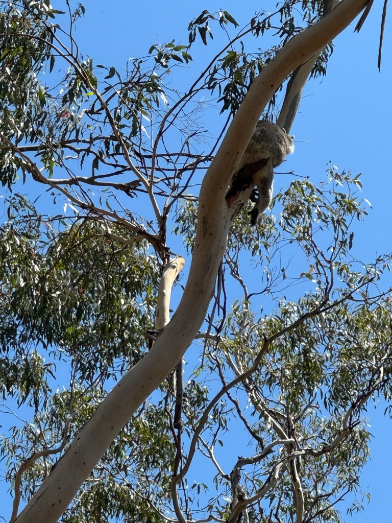 This koala was just lying on the branch. Apparently they rarely fall out due to their sharp claws and quick reflexes. Look at the claws!This koala was just cuddled up. We also saw a pair of Gulah birds. Very colourful!