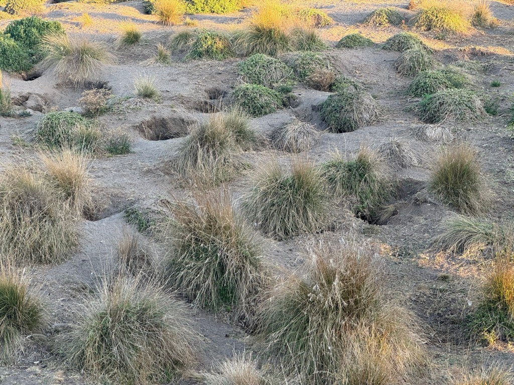 Some of the penguin burrows. Other burrowsWe were able to capture a few photos before dark but then all cameras and phones had to be put away in order not to disrupt the penguins. There were about 200+ penguins counted that came out of the ocean near our viewing area the night we were there.From their website