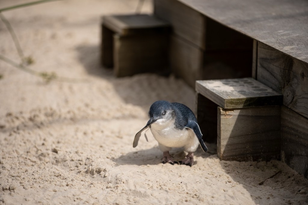 After supper, we headed to the Penguin Parade area. This had been hard for us to get tickets for – normally not once school is back in session which it was. However we were lucky to get some in the premium viewing area which holds about 300 people compared to the regular area which holds 2000! This event attracts over 700,000 visitors per year and is home to the world’s largest colony of little penguins, with approximately 40,000 birds residing on the Summerland Peninsula. Also known as little blue penguins or fairy penguins, these are the smallest penguin species (around 30-33 cm tall) and the only ones with blue-and-white feathers.