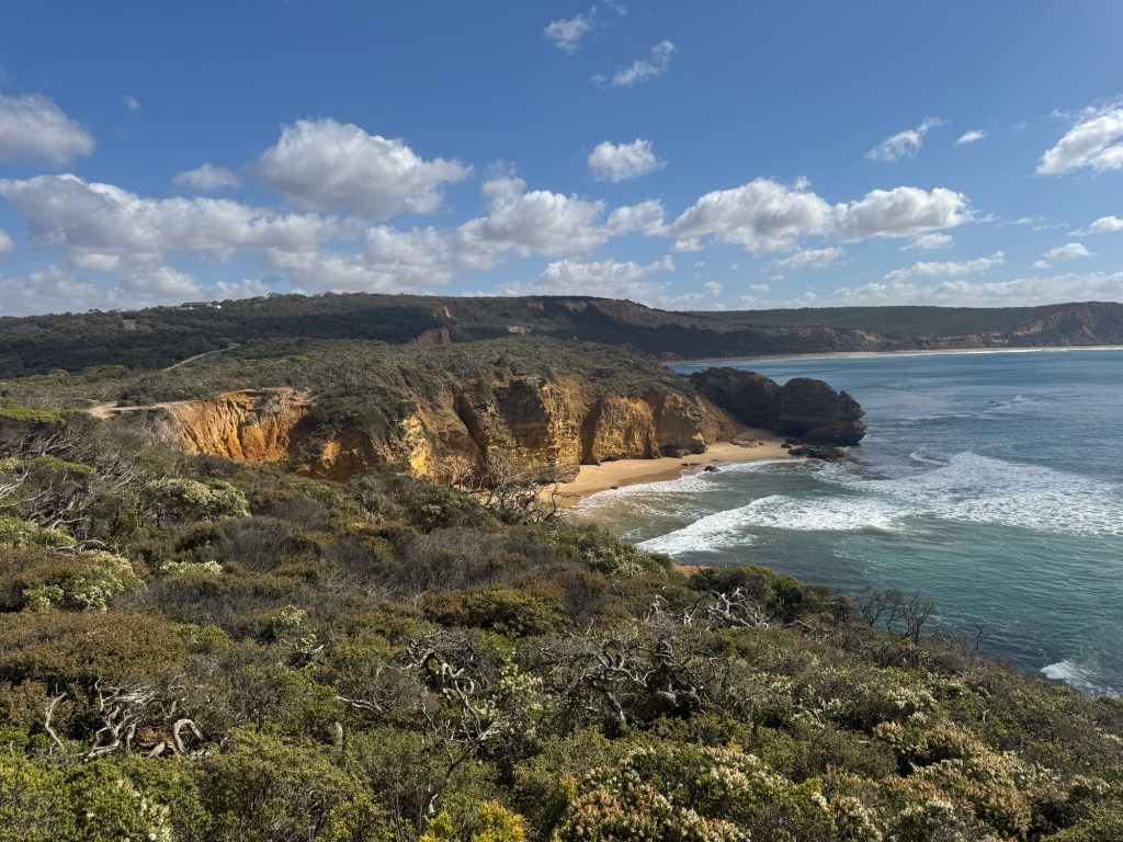 The next morning we began our journey along the Great Ocean Road. It was built by WWI veterans between 1919 and 1932 and is the world’s largest war memorial. It follows the ocean a great deal of its 243 km length. Wednesday we had beautiful weather for driving.