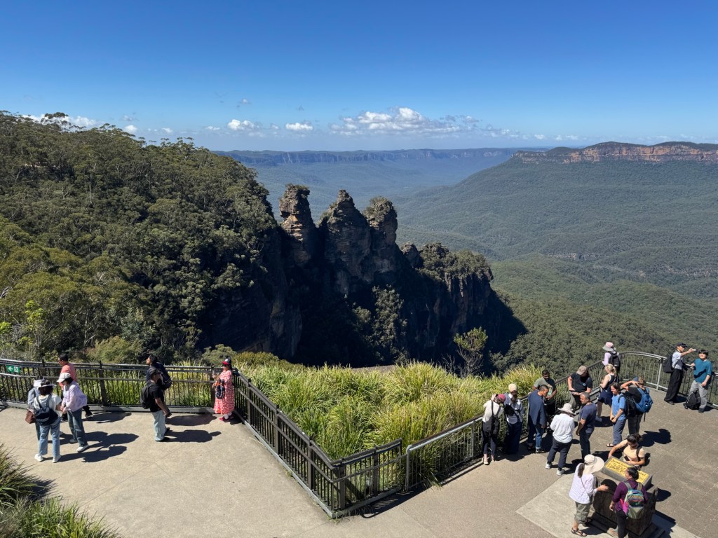 Thursday we headed out for a few more views between the towns of Katoomba and Leura. We went to Echo Point to see the Three Sisters. It was beautiful – clear, sunny and warm.