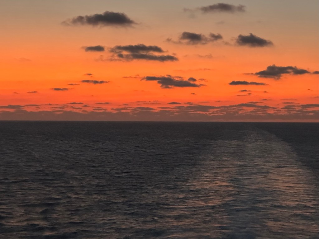 We have 4 days of “at sea” until we arrive at our next stop, Puerto Quentzal in Guatemala. We managed to capture one sunset on board.