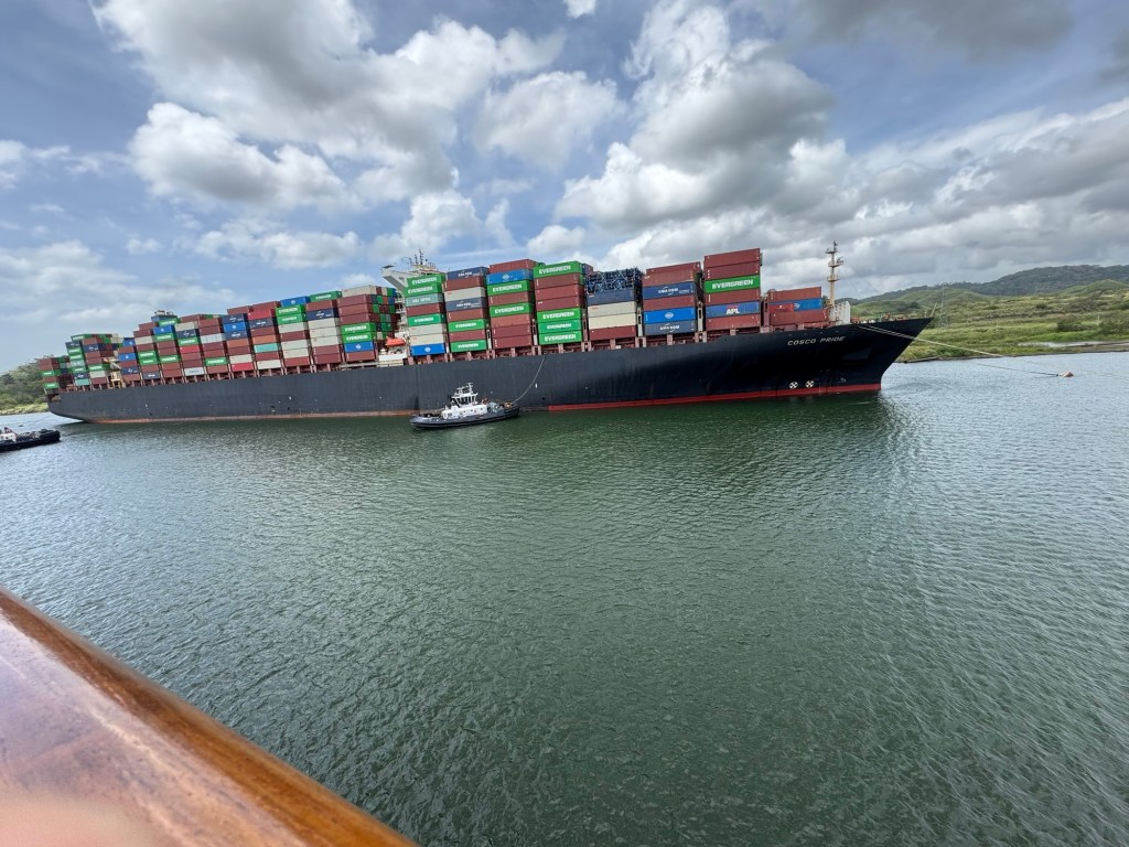 There are locks at both the start and the end of the canal. The first set had 3 locks. We were passing through the most recent enlargement of the canal, opened in 2016, and accommodates the large ships. This is the first time for the Queen Anne to pass through the canal.
