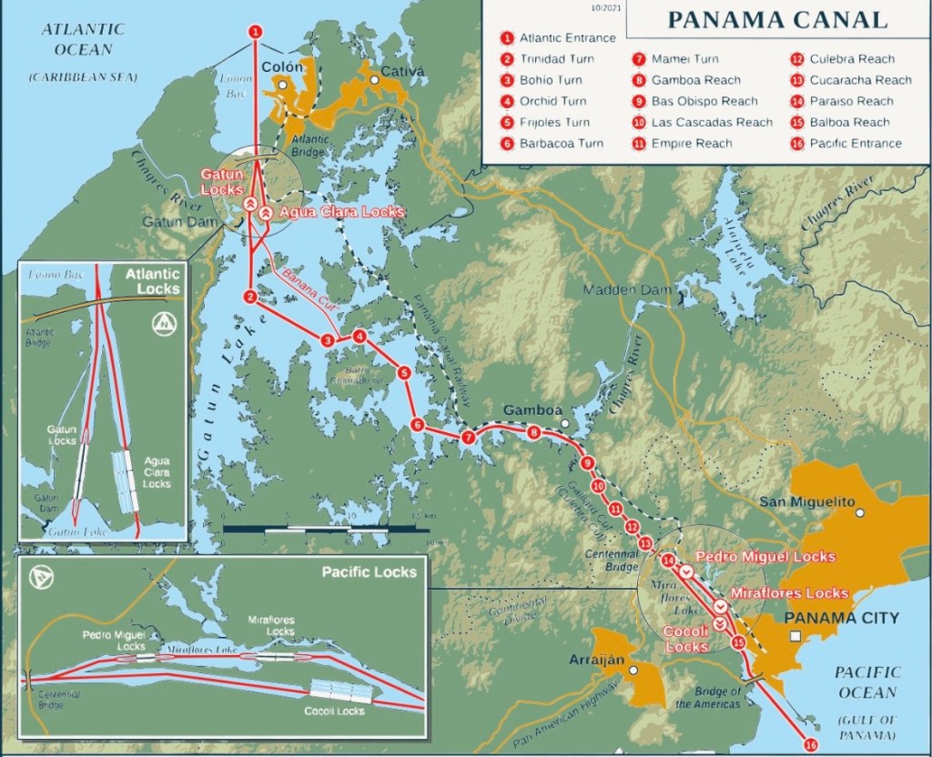 On Monday morning we arrived at the entrance to the Panama Canal to begin our passage to the Atlantic Ocean. We began our passage about 7 am and would be more than 12 hrs in passage. The canal is 82 km long and each ship passing through the locks requires on average 52 million US gallons of fresh water.