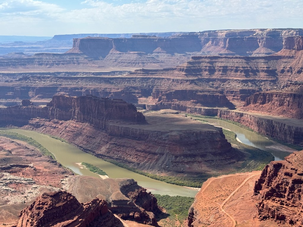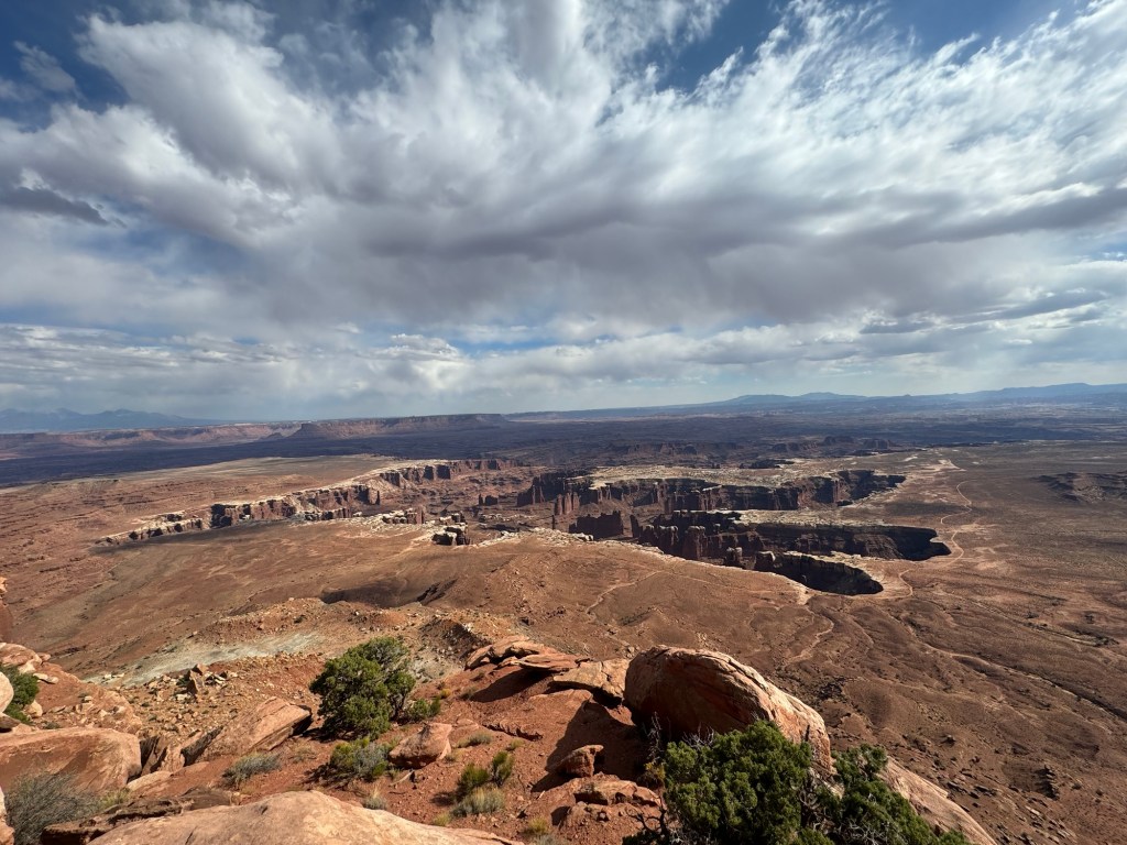After our visit there, we headed to the north entrance of Canyonlands National Park. Called Island in the Sky, it is because you drive out on a mesa and then across a narrow “neck” to the island.